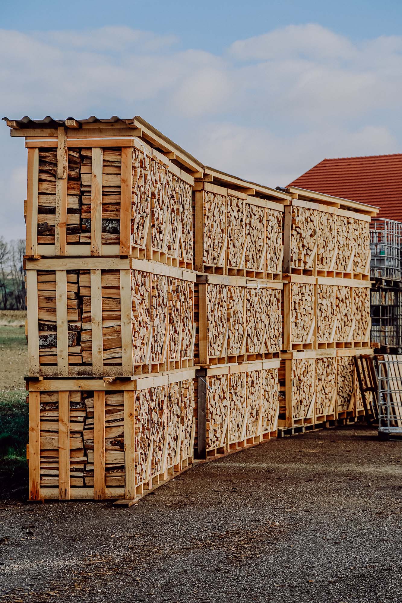 Jedes Stück Holz wird von uns händisch in selbst gefertige Kisten sortiert.