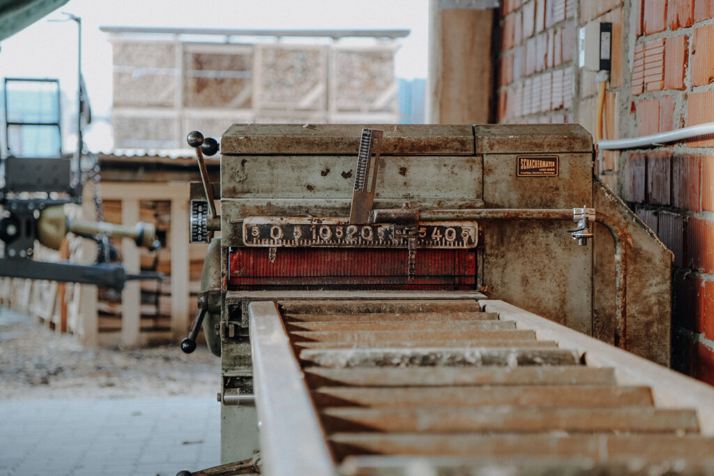 Diese traditionelle Vorrichtung ermöglicht es uns, dein Holz in einem einzigen Arbeitsgang präzise zu bearbeiten, um am Schnittholz auf beiden Seiten saubere Ränder, auch als „Saum“ bezeichnet, zu erzeugen.